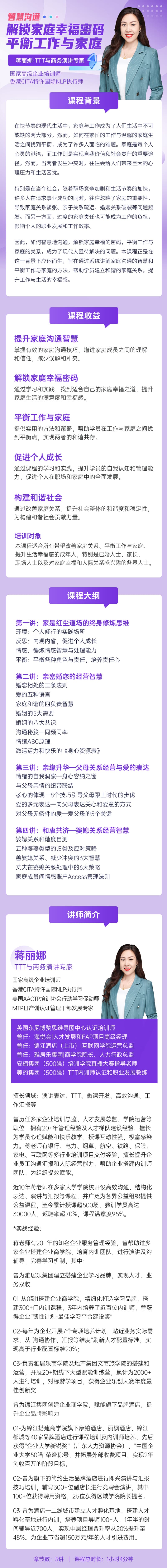 学习对象: 本课程适合所有希望改善家庭关系、平衡工作与家庭、提升生活幸福感的成年人,特别是已婚人士、家长、职场人士以及对家庭幸福和人际关系感兴趣的各界人士。 章节数: