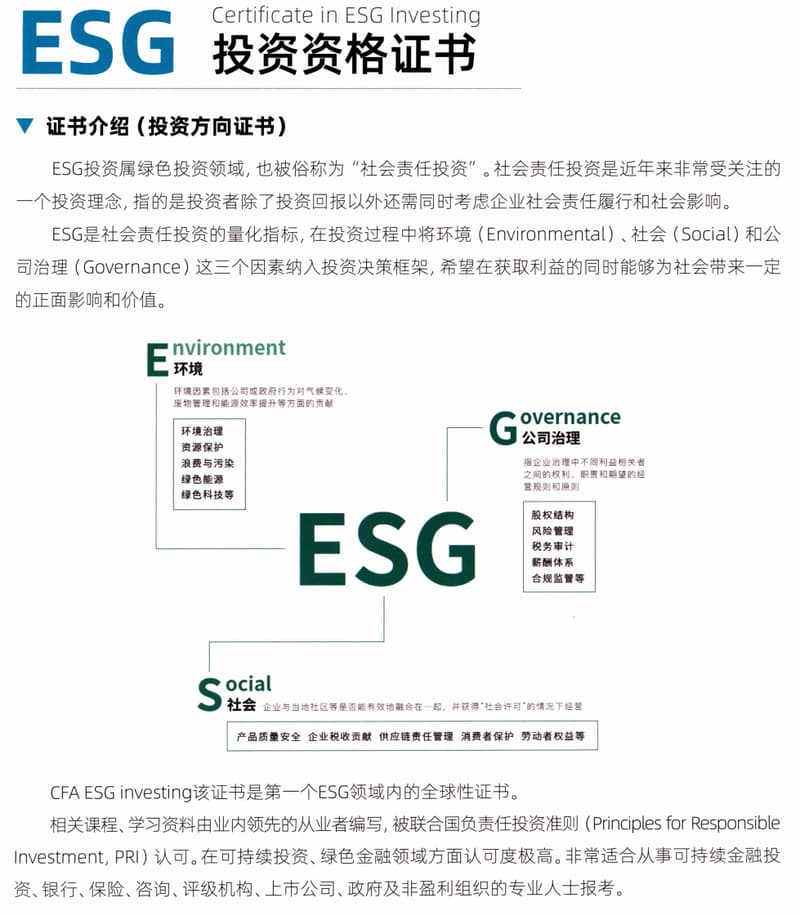 《ESG-投资资格证书》项目