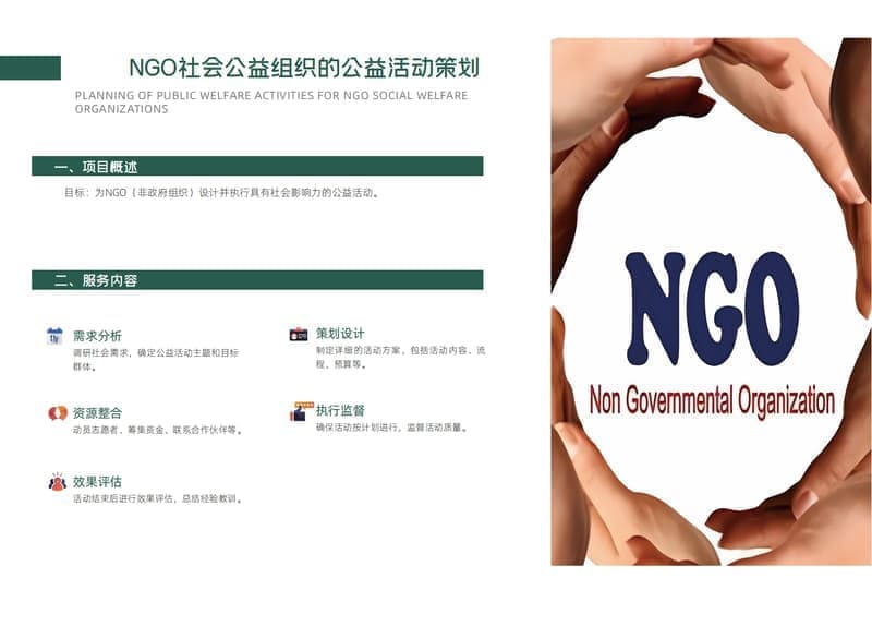 为NGO(非政府组织)设计并执行具有社会影响力的公益活动。
