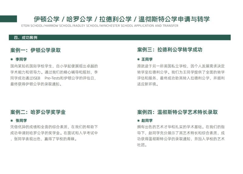 伊顿公学/哈罗公学/拉德利公学/温彻斯特公学申请与转学
