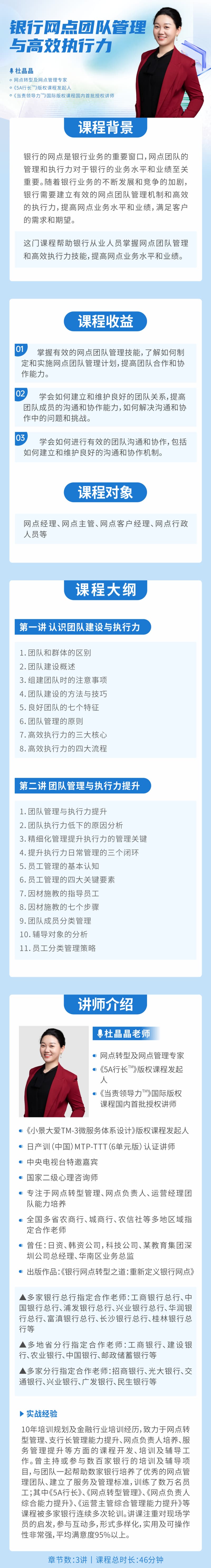 学习对象: 网点经理、网点主管、网点客户经理、网点行政人员等 章节数: 3 课程形式:小框出镜