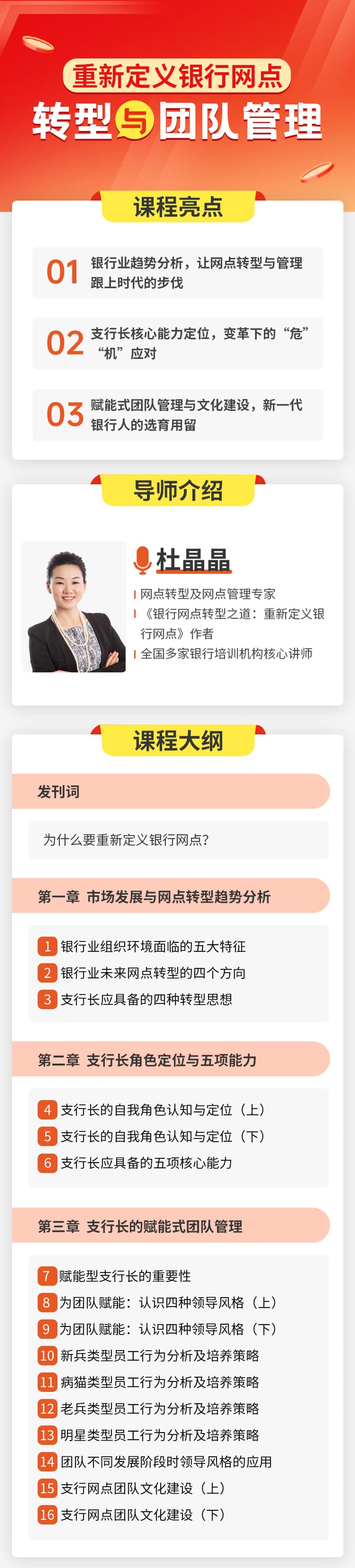 银行业趋势分析,让网点转型与管理跟上时代的步伐 支行长核心能力定位,变革下的“危”“机”应对 赋能式团队管理与文化建设,新一代银行人的选育用留