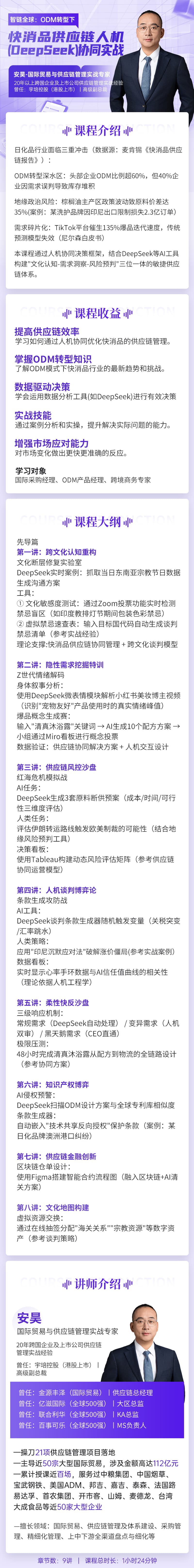 学习对象: 国际采购经理、ODM产品经理、跨境商务专家 章节数: 9 课程形式:全屏入镜