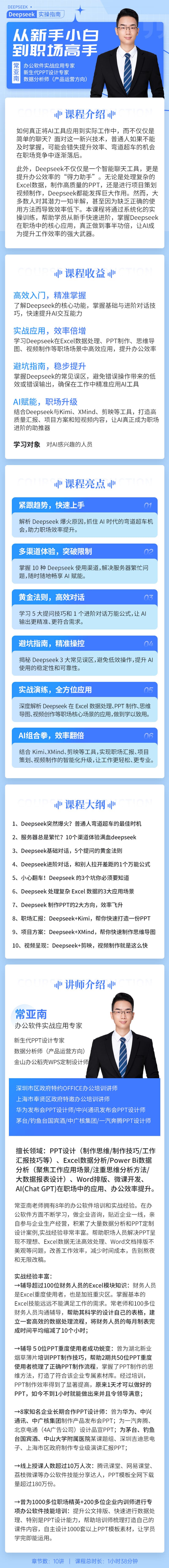 如何真正将AI工具应用到实际工作中,而不仅仅是简单的聊天?面对这一新兴技术,普通人如果不能及时掌握,可能会错失提升效率、弯道超车的机会,在职场竞争中逐渐落后。 此外,Deepseek不仅仅是一个智能聊...