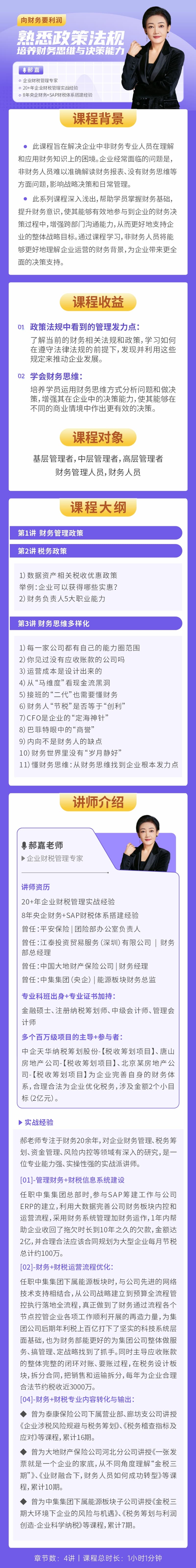学习对象: 基层管理者,中层管理者,高层管理者,财务管理人员,财务人员 章节数: 4 课程形式:全屏入镜