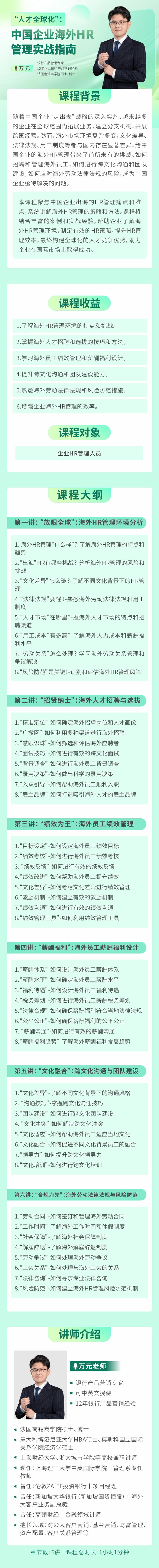 学习对象: 企业HR管理人员 章节数: 6 课程形式:全屏入镜