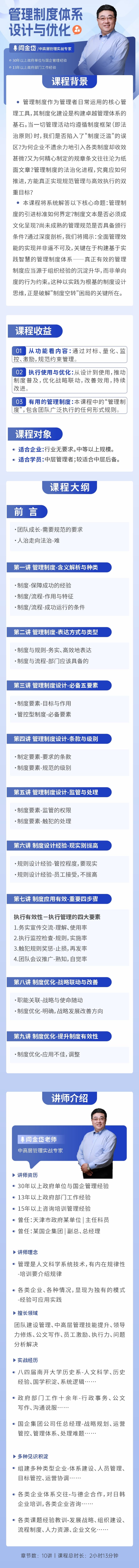 学习对象: 适合企业。行业无要求。中等以上规模。 适合学员。中层管理者;较适合中层后备。 章节数: 10 课程形式:小框出镜