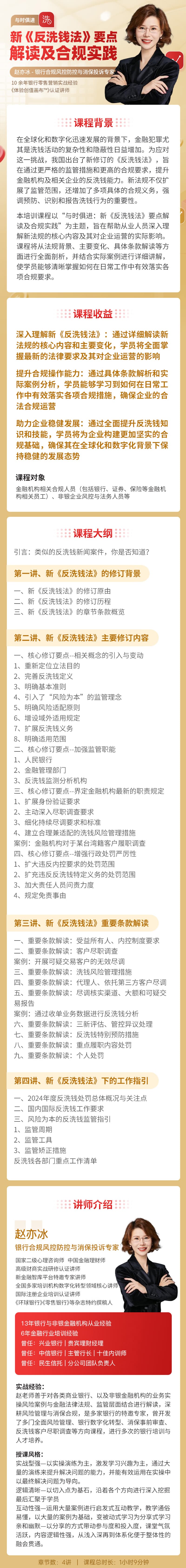 学习对象: 金融机构相关合规人员(包括银行、证券、保险等金融机构相关员工)、非银企业风控与法务人员等 章节数: 4 课程形式:小框出镜