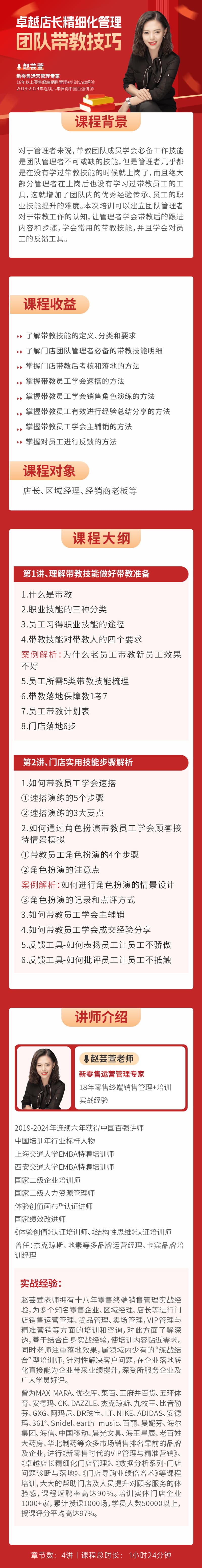 学习对象: 店长、区域经理、经销商老板等 章节数: 4 课程形式:全屏入镜
