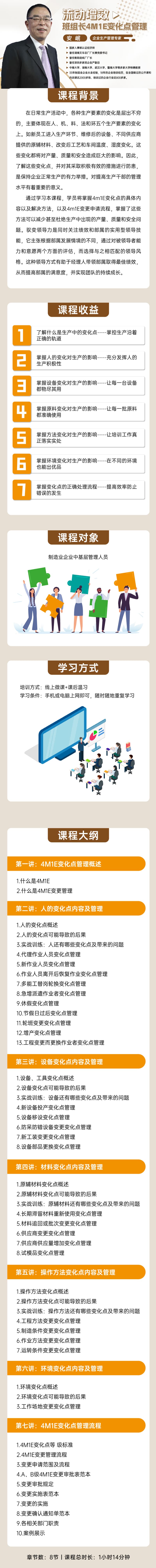 学习对象: 制造业企业中基层管理人员 章节数: 8 课程形式:PPT录屏