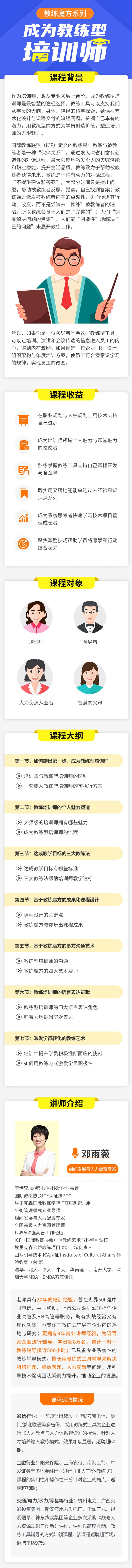 作为培训师,想从专业领域上台阶,成为教练型培训师是最智慧的途径选择。教练工具可以支持我们从学员的大脑、身体、神经的科学探索,到课程艺术化设计与课程交付的流程问题,挖掘自己本有的潜力,用教练型的方式为学...