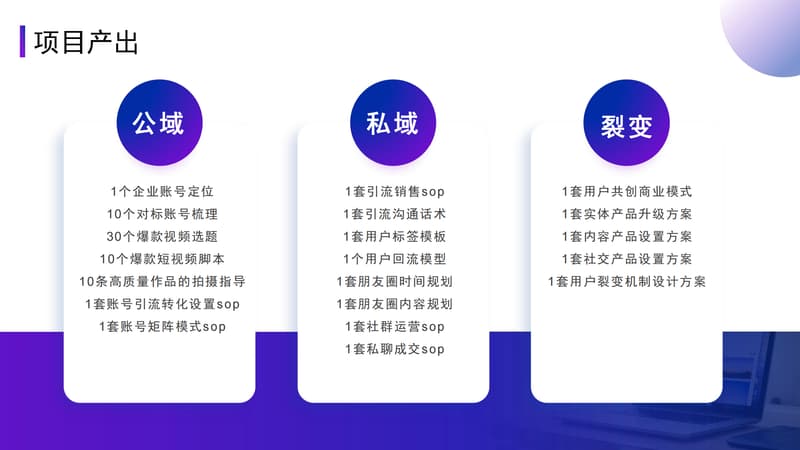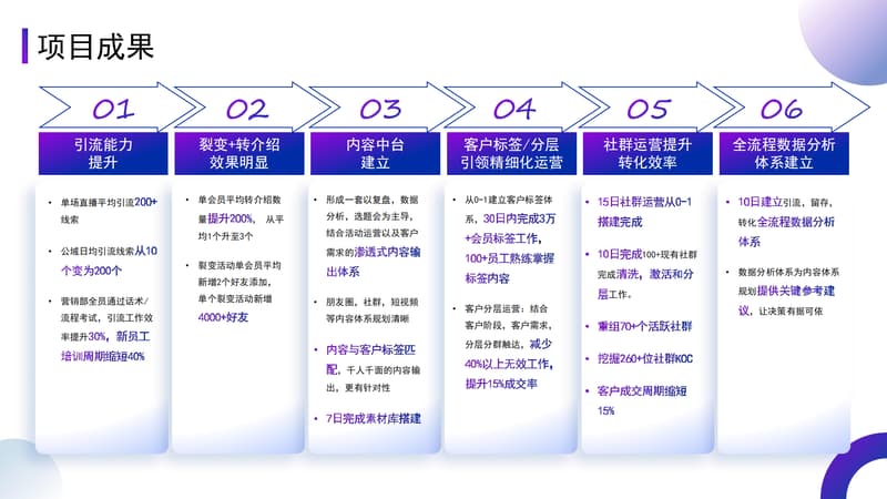 项目基于各行各业在全域营销领域的众多成功案例,萃取其创新领先的成功方法论,结合前期多维度调研的市场结果和深入了解的企业情况,为企业定制化搭建全域营销体系及落地方法,针对性解决企业的实际难题!