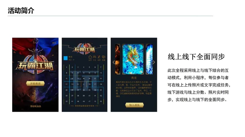 此次全程采用线上与线下结合的互动模式,利用小程序,每位参与者可在线上上传照片或文字完成任务线下游戏与线上分数、照片实时同步,实现线上与线下的全面同步。