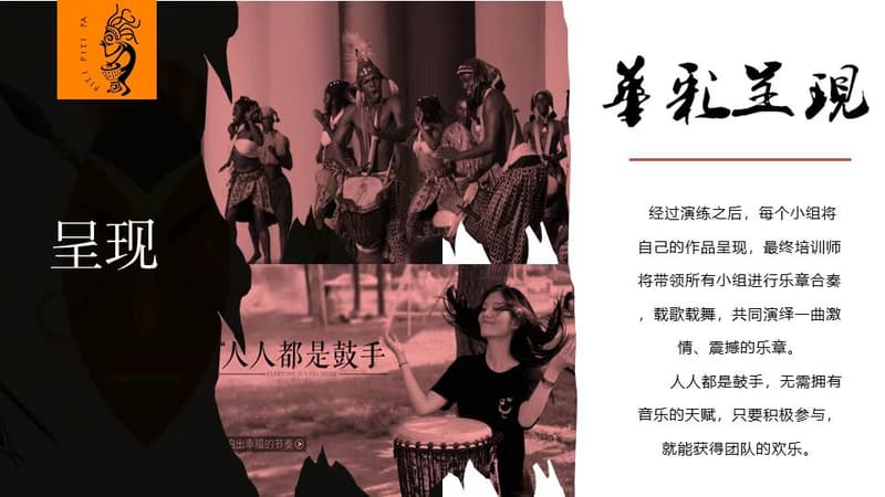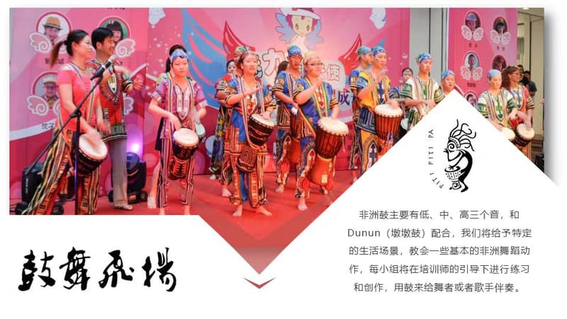 在东丰的斯瓦裕里语中,和舞是同一个字,打击乐器可能是世界上最古老的乐器,而手鼓是最具代表性的打击乐器所以说手鼓也可能是世界上最古老的乐器了,非洲手鼓多-2-起源于十三世纪曼丁人建立的马利王朝。阳光体验推出的丰洲项目是将丰洲鼓融合进团建项目,所有成员在载歌载舞中,一起学习丰洲鼓的节奏,共融共通,经过团队配合演绎出热情、激昂、曼妙的鼓乐华章。