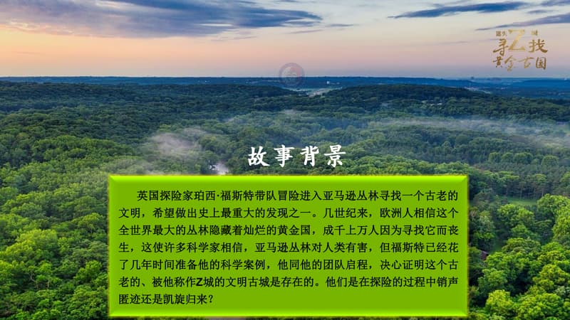 英国探险家珀西·福斯特带队冒险进入亚马逊丛林寻找一个古老的文明,希望做出史上最重大的发现之一。几世纪来,欧洲人相信这个全世界最大的丛林隐藏着灿烂的黄金国,成千上万人因为寻找它而丧生,这使许多科学家相信,亚马逊丛林对人类有害,但福斯特已经花了几年时间准备他的科学案例,他同他的团队启程,决心证明这个古老的、被他称作Z城的文明古城是存在的。他们是在探险的过程中销声匿迹还是凯旋归来?